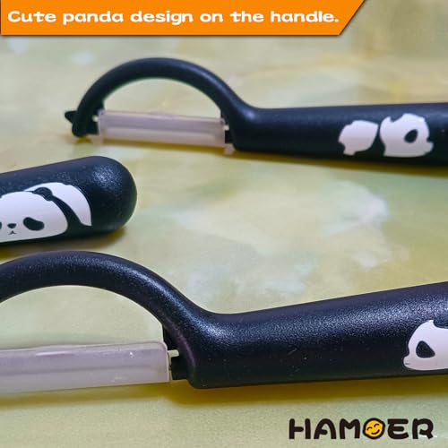 Peeler-Swiveling twin blades with flexible action easily peel potatoes, apples and other tough skinned fruits and vegetables. Built-in potato eye remover