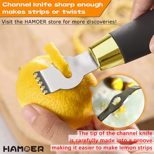 Vegetable Citrus Lemon fruit Potato Peeler Zester Channel Knife Tool Set for Kitchen Bar, Stainless Steel Blade, Ergonomic Design Curved Handle, Black-Gold