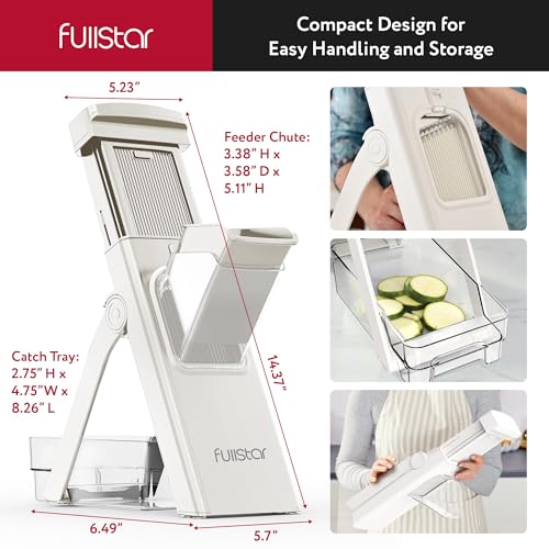 Stylish and Practical – Add a touch of elegance to your countertops with the Solid White design. Not only does our vegetable mandoline slicer stands out aesthetically, but also promises the renowned durability and quality of the Fullstar brand at an affordable price.