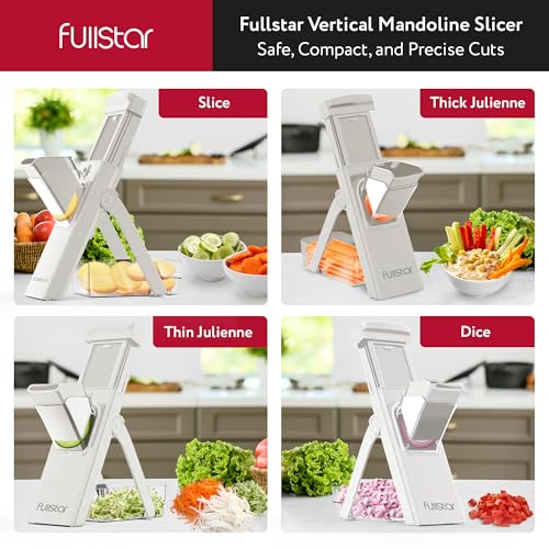 Fullstar Safer Mandoline Slicer for Kitchen, Cucumber Slicer, Potato, Julienne Vegetable & Food Chopper (4 in 1, Solid White)