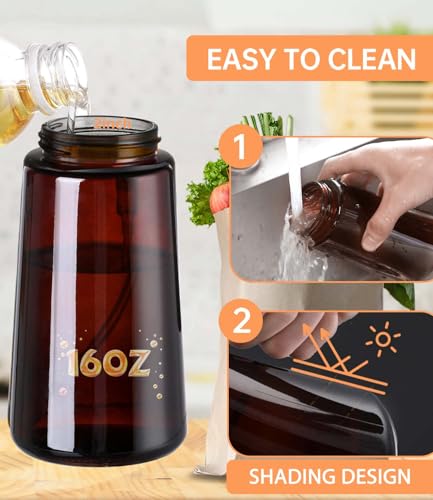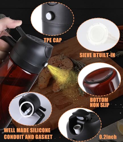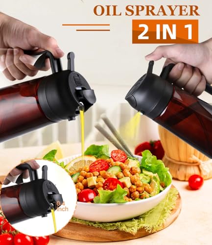 Oil Sprayer for Cooking 2 in 1 Olive Oil Dispenser Bottle Spray and Pour Kitchen Gadgets for Air Fryer, Salad, BBQ – 16oz/470ml Glass Mister Bottle with Stickers -Upgraded Brown