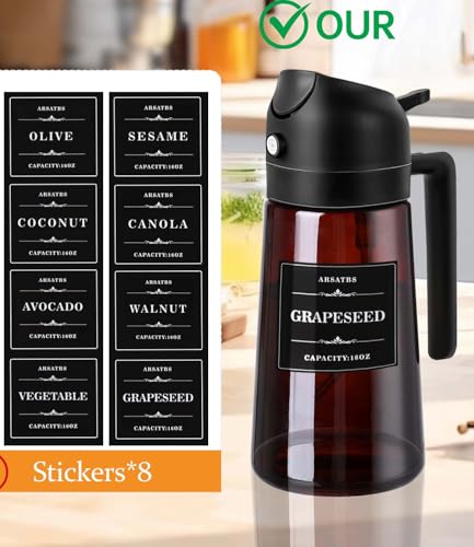 Brown upgraded oil dispenser for kitchen: Glass 2 in 1 oil dispenser bottle has a shading design, which can also ensure the olive oil fresh when put it under the sun. Your olive oil can ensure delicious for a long time. We also include 8 commonly used oil stickers (olive, sesame, coconut, canola,avocado,walnut,vegetable,grape seed), providing long-lasting time for your oil sprayer and dispenser for cooking.