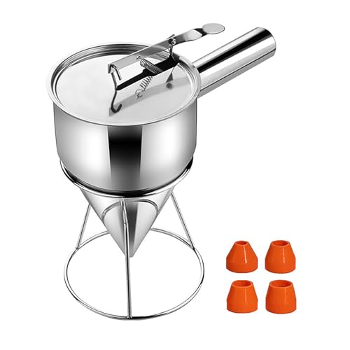 Pancake Batter Dispenser, 20oz Multi-Caliber Stainless Steel Funnel Cake Dispenser with Stand Great for Pancakes, Cupcakes or Any Baked Goods#B