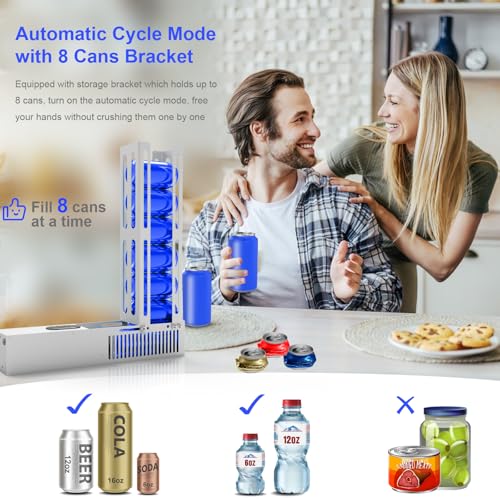Electric Can Crusher, Automatic Can Crushers, 8oz&12oz&16oz Aluminum Can Crusher Electric, Can Fill 8 Cans at a Time, Cans Trash Compactor, Heavy-Duty Crusher for Aluminum Soda, Beer, Cola Cans