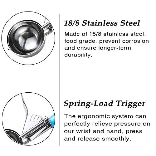 MULTIPLE USES, IDEAL PORTION SCOOP – Easily serve the right amount of mini servings, the portion scoopers can be used to scoop and portion ice cream, cookie dough, rice pudding, mashed potatoes, and meatball etc. We can use them as ice cream scooper, muffin scoop, cupcake scoop, food scoop, meatball scoop.