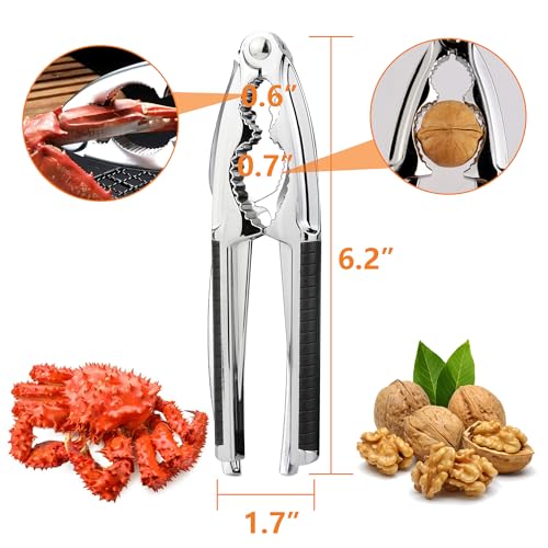 Material: The crab claws are made of zinc alloy, and the serrated teeth on the inside can withstand great pressure. The handles on both sides are ergonomically designed and non-slip designed to increase hand and handle friction to ensure a secure grip.