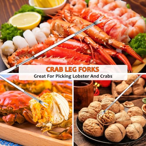 Sturdy Material & Excellent Workmanship: Solid die-cast zinc alloy crackers, with jagged teeth and durable hinges, has higher hardness. It is especially suitable for processing these hard shell seafood or nuts, premium double ended stainless steel forks for picking lobster/crab thoroughly, stainless steel shellfish scissors are sharp enough to open small lobster or shrimp. Plastic shellers help you unzip the shell of crab legs, lobsters and shrimps.