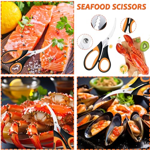 To Eat Crab and Lobster: Our crab crackers and tools efficiently get every morsel of meat from a variety of shellfish effortlessly All tools are easy to use and wash. The soft comfort grip of the scissor prevents it from slipping.