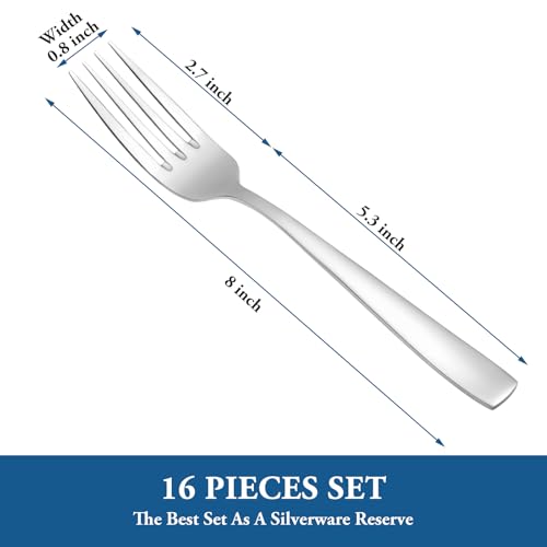 16 Piece Dinner Forks Set, Food Grade Extra-Fine Stainless Steel Dessert Salad Forks Silverware, Metal Forks for Home Kitchen Restaurant Hotel, 8 Inches, Mirror Finish & Dishwasher Safe