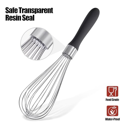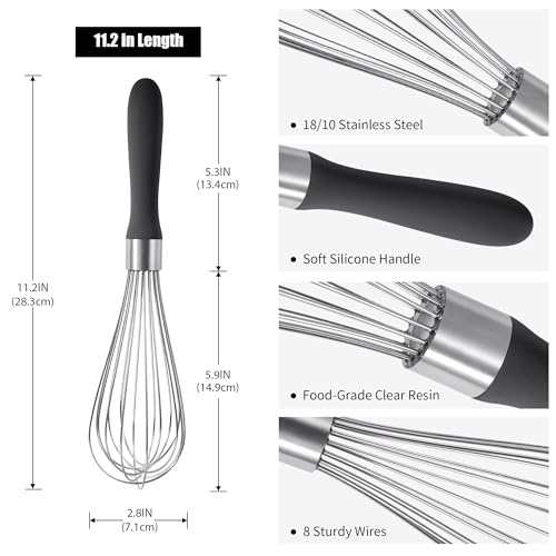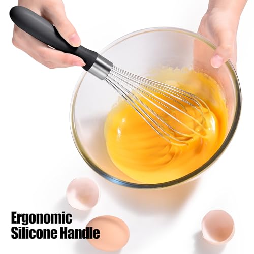 18/8 Stainless Steel Balloon Whisk, Doosu Kitchen Whisk for Cooking Handheld Egg Beater with Rust-Proof Sturdy Wires & Non-Slip Silicone Handle for Beating, Stirring, Blending (8 Wires, Black)
