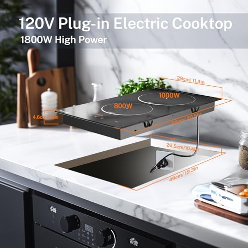 12 Inch Electric Cooktop, 110V 2-Burner Countertop Burner Built-in, 120V Plug In Ceramic Cook top with Touch Control, Timer, Child Lock, Radiant Electric Stove Top for RV Kitchen Cooking