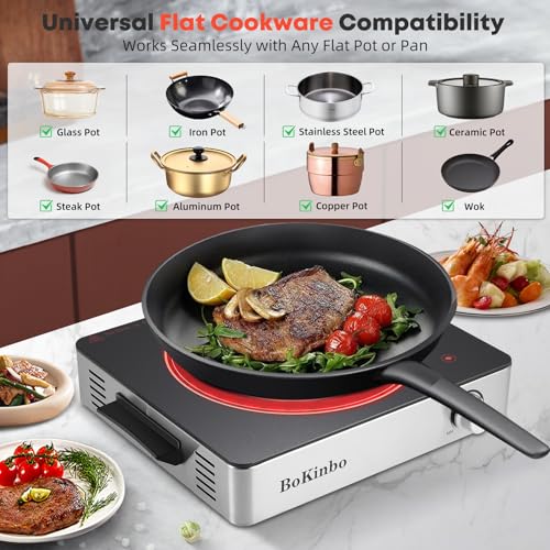🍳Reliable After-Sales Support – We stand by our product with a one-year warranty. If you have any issues, reach out to our BoKinbo customer service team via Amazon Messages. Your satisfaction with our electric burners for cooking is our top priority.