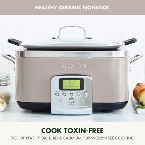 GreenPan Elite 8-in-1 Programmable 6QT Electric Slow Cooker, Dishwasher Safe Lid & Removable Crock, PFAS-Free Healthy Ceramic Nonstick Multi-Cooker, Sear, Sauté, Brown, Steam Basket, Roast, Clay