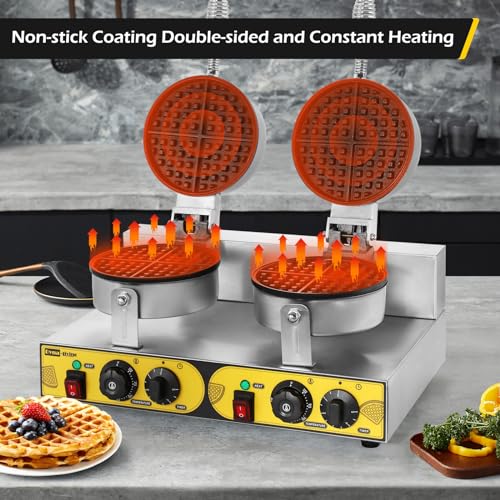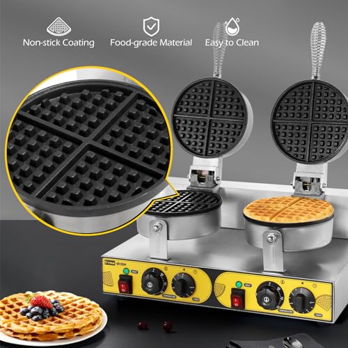 Dyna-Living Commercial Waffle Maker Double Waffle Maker, 2400W Non-Stick Commercial Waffle Maker Stainless Steel Waffle Iron Machine for Restaurants, Large Waffle Maker, Commercial Waffle Machine