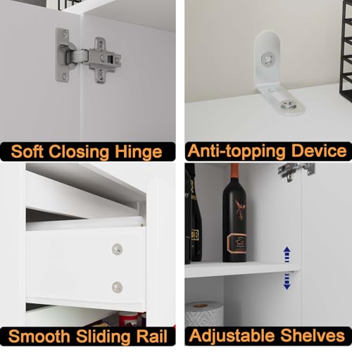 MULTI-FUNCTIONAL CABINET: With a versatile design and various storage options, this storage cabinet can be used not only as a freestanding pantry in your kitchen, but also as a buffet sideboard in the dining room, a console table in the hallway, or a coffee bar in your living room. Easily adapting to meet your needs in any space.