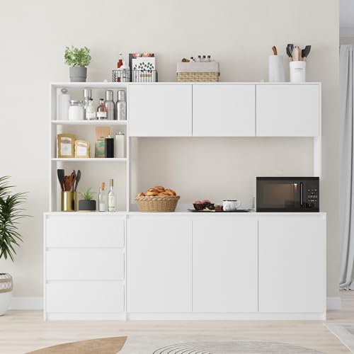 Be the first to review “Large Kitchen Hutch Cabinet, Kitchen Pantry Cabinet with 3-Tier External Shelves and 3 Drawers, Storage Cupboard Cabinet with Microwave Shelf, Modern Food Pantry Cabinet for Dining Room, White”
