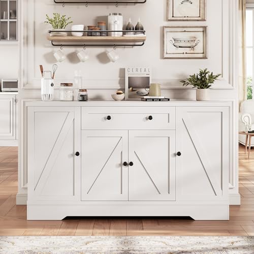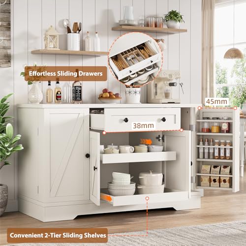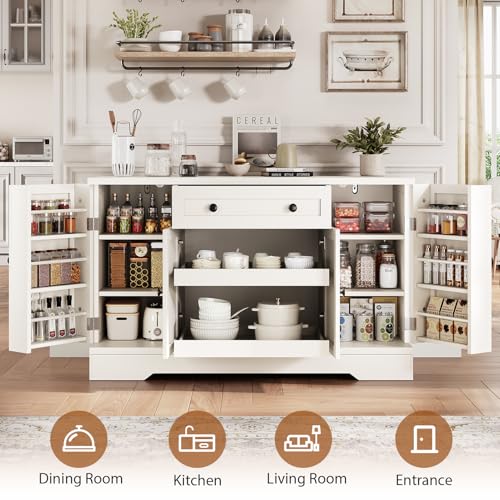 Buffet Cabinet with Storage, Sideboard Kitchen Pantry Coffee Bar Cabinet, Large Wood Food Storage Cabinet with Drawers/Doors/Shelves/for Kitchen Dining Room, White