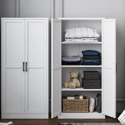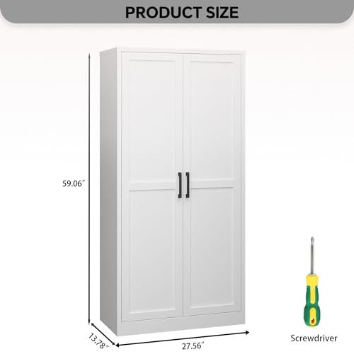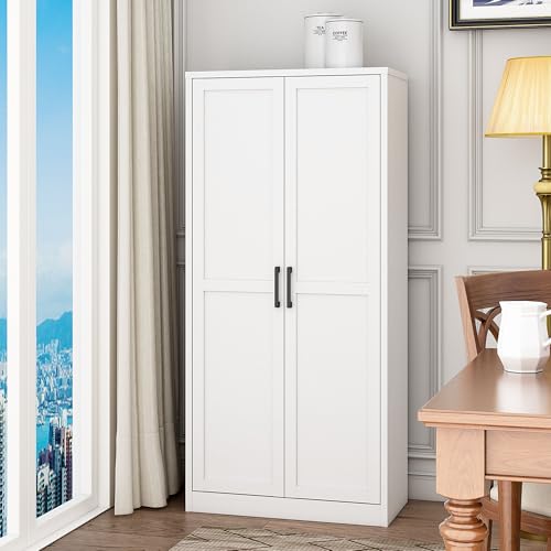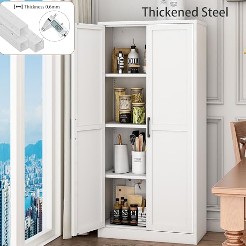 MIOCASA Metal Pantry Cabinet with Adjustable Shelves, Heavy-Duty Metal Storage Cabinet with 2 Doors Organizer for Kitchen, Office, Garage (White)