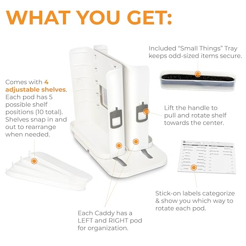 Adjustable Shelves for Customized Storage: Easily snap in shelves to accommodate the height of your spice jars or seasoning containers. With 5 adjustable locations on each pull-and-rotate pod, you can arrange your spices exactly as you need them. Each shelf measures 8.5″ in width and 2.75″ in depth.